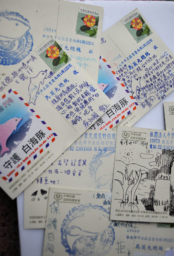 一位長安國中的孩子在明信片上請求總統不要讓白海豚消失;陳同學則寫著「我們想吃新鮮蛤犡、看到漂亮的鳥、可愛的蝦猴,請保護我們的大城溼地不被破壞。救救我們台灣特有的中華白海豚,不要國光石化建設。」