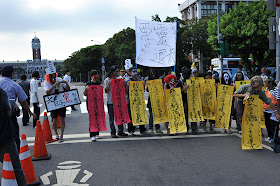時值24日,農曆7月15日中元普渡亡魂之日,台北市總統府前也聚集一群「鬼魔」,身上貼著各式法號符咒,口中呼著口號,繞著總統府走。原來是環保團體號召民眾「裝神弄鬼」,藉著中元普渡,讓阻礙環境正義、社會公義的厲鬼昇天,不要陰魂不散橫行台灣社會。